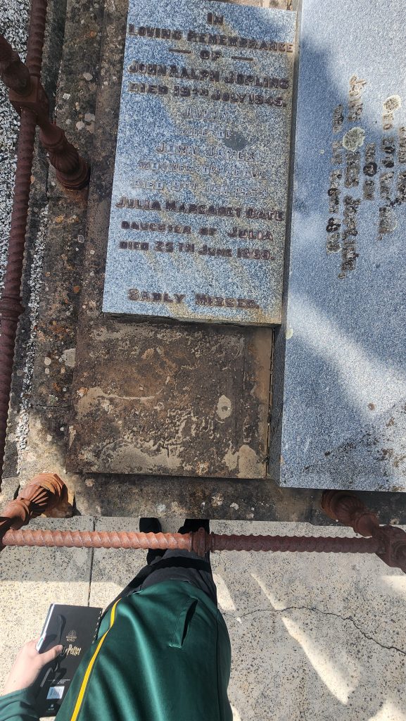 Jack died aged 48 after a short illness and was buried in the grand family memorial in the prestigious Private Block B location. The memorial is the final resting place for three generations of the family, including his parents John James Jopling (1868 – 1930 aged 62) and Julia Jopling (1864-1953 aged 89), and his sister Julia Margaret Date (1893-1969 aged 76). John Robertson Jopling (1833 -1901, aged 68), a superphosphates manufacturer and Margaret Maria Jopling (Ralph) (1843 – 1926, aged 83) were also buried there.